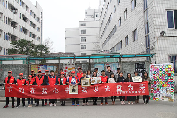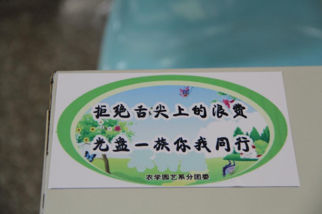 近日,农学园艺系分团委联合五谷杂粮黏贴画协会在食堂门口开展“我以光盘为荣,节约在我心中”活动。