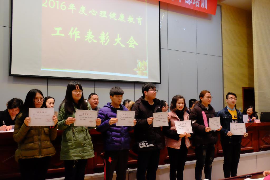 大会对我院在2016年度大学生心理健康教育工作中做出成绩的机电工程系等4个系部、周凌云等5位心理老师、倪玉婷等14位学生心育干部进行了表彰。并希望所有受表彰的集体和个人再接再厉害,为我院心理工作再创辉煌。
