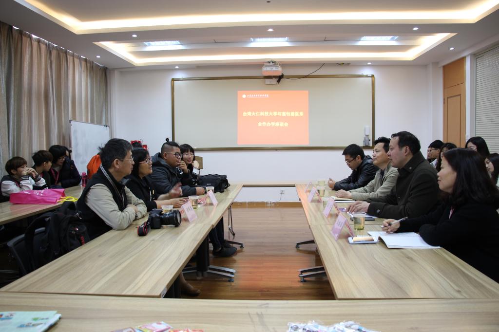 4月14日上午,双方在畜牧兽医系本部会议室就宠物行业发展、宠物美容教学、两岸学生互访等情况进行了深入的交流与讨论。