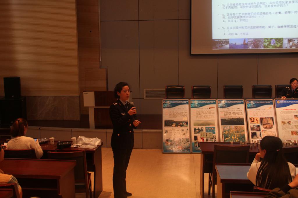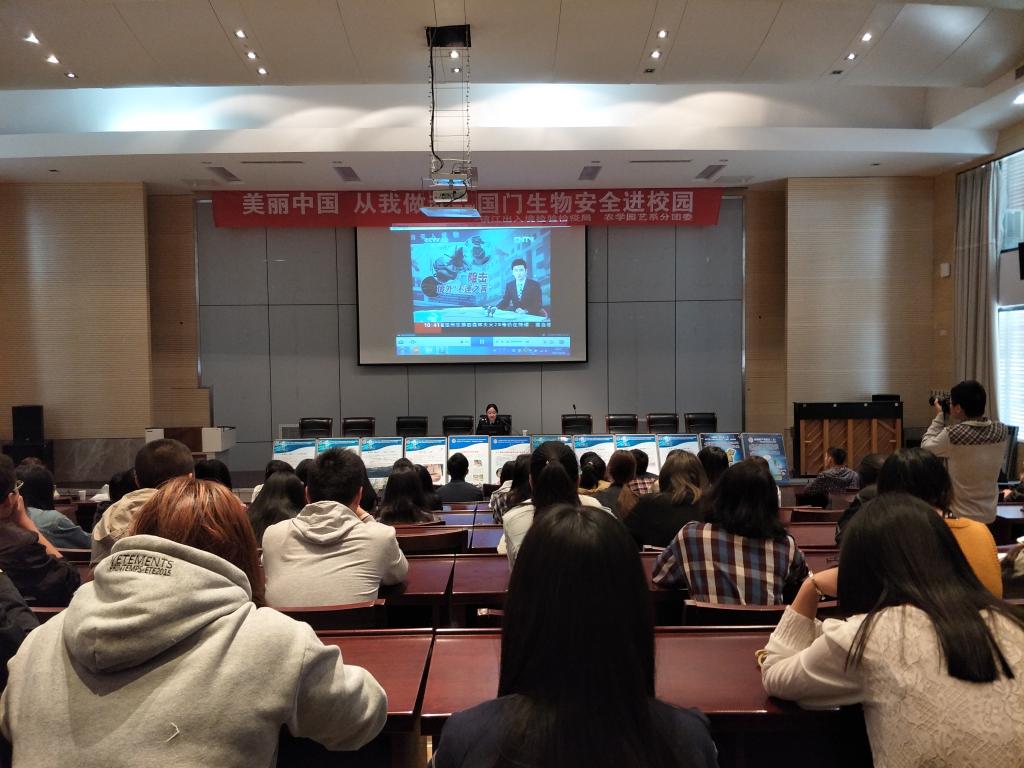 研发楼报告厅举行了“美丽中国,从我做起——国门生物安全进校园”活动,农学园艺系15级农学专业的100名学生参加了此次活动。