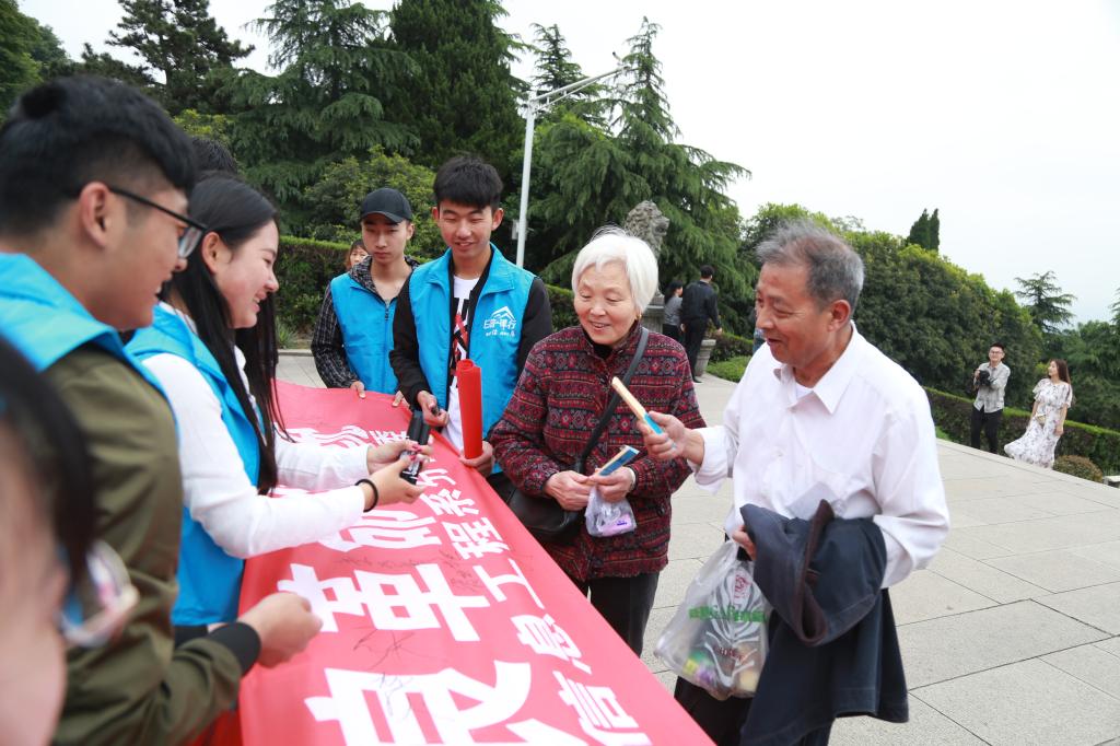 师生们在中山陵、南京大屠杀纪念馆等地看文献展品、听讲解介绍,实地感受了革命先烈的奋斗历程、崇高情怀和优良作风。活动中,还穿插举行了主题横幅签名、“小红袋”志愿环保、“无声护航”志愿维序、有奖知识竞赛等活动。