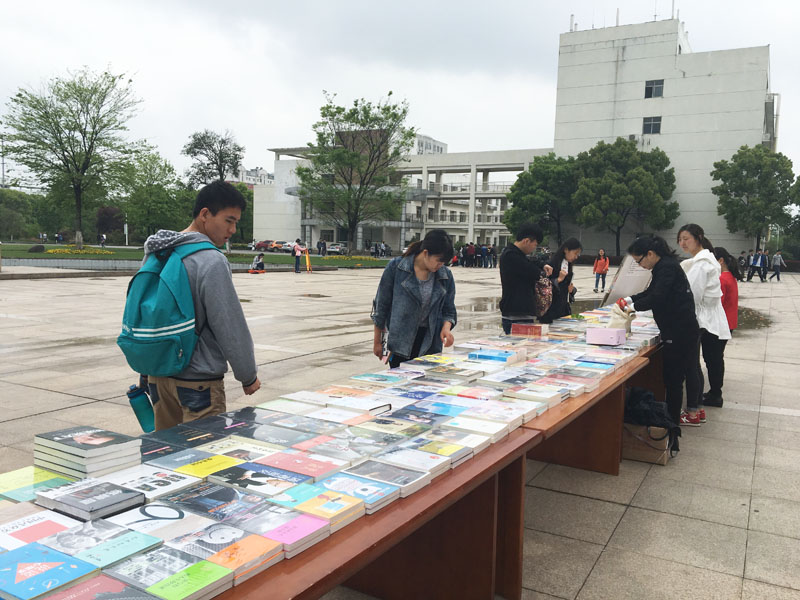 图书馆于5月4日再次联合句容新华书店有限责任公司、湖北三新文化传媒有限公司举办了“第七届大学生读书节活动——来图书馆就‘购’了-图书展销与荐购”活动。
