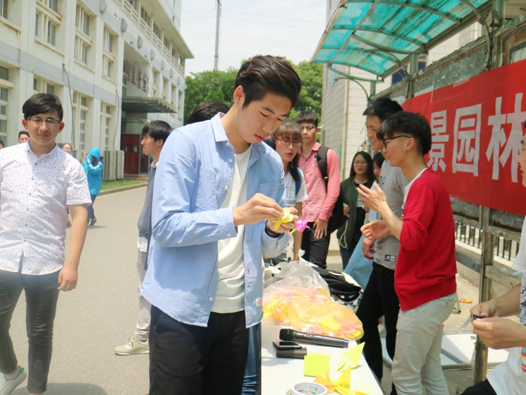 风景园林系各团支部纷纷开展“感恩母爱”主题活动,同学们利用手边的纸片折成各种千纸鹤,并将对母亲满满的祝福写在千纸鹤上。5月11日,风景园林系分团委将同学们制作的千纸鹤收集汇总并制成特大号的贺卡展示在食堂门口,“千纸鹤上念母恩”吸引了大批同学驻足留影,并将照片当场发给自己的母亲以表感恩。