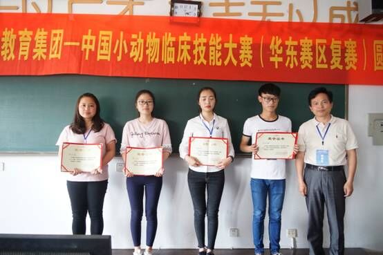 大赛由中国现代农业职教集团和东西部小动物医师大会主办,来自华东地区六省一市的高校、职业院校和宠物行业的执业医师参加比赛,争夺参加大连总决赛的决赛入场券。经过理论笔试和技能操作,畜牧兽医系15艾贝尔学徒制班的张石莲和14动物医学(3+2)班的张颖同学获得了未来兽医组华东赛区的2张决赛入场券。