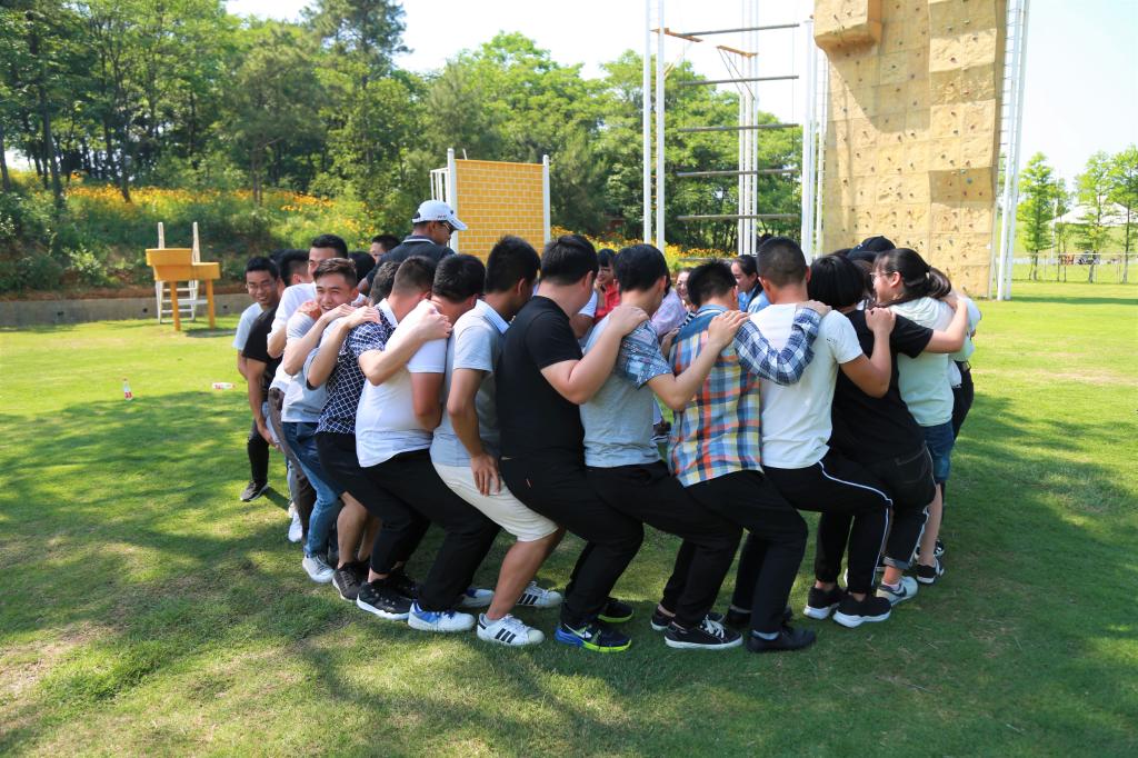 本次活动采取“理论+游戏+分享”的形式,分别进行了“围圈坐腿”、“瞎子贪吃蛇”、“信任背摔”、“坐地起身”、“耐力攀岩”等破冰、协作、竞争为主题的户外拓展活动。活动中,同学们在老师的指导下完成了一个又一个的挑战动作,在轻松欢快的氛围中很快找到了团队归属感,感受到集体的力量和凝聚力。