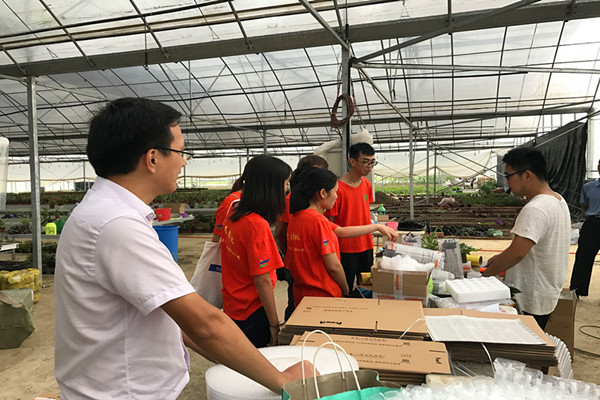9月4日,分团委“木棉花”创新创业实践团队的师生来到了句容市春城农业电子商务产业园,找到了张鸣峰老师。张鸣峰老师通过两年时间,建成了春城创意农业示范园和花卉大棚,为学生提供了学习和实训的平台,张鸣峰老师还将百合花种植技术手把手地教给附近村上的20多位农民,并与他们签订收购合同,带动了当地农民致富。同学们在参观了张老师的示范园和花卉大棚后,惊叹不已,深切感受到我们的老师不仅能在三尺讲台上传授知识,更能在实践中将知识转化为生产力。