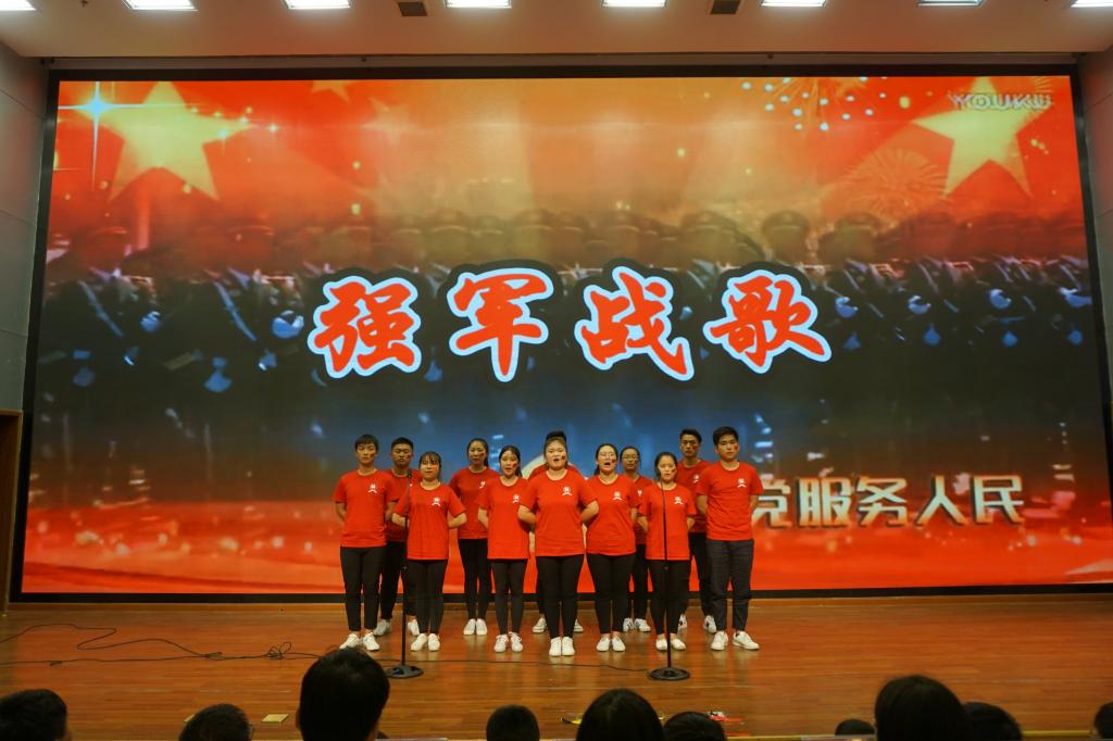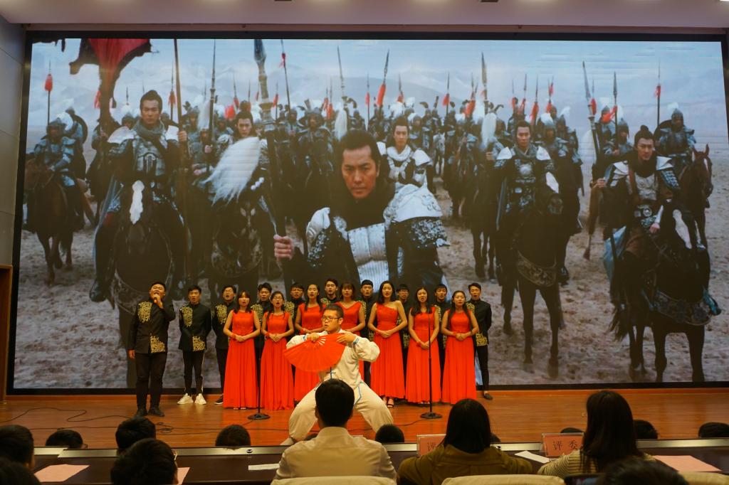 参加比赛的同学们自由组队,利用课余时间认真排练,精心准备,最终有六支合唱团队走上了红歌会的决赛舞台现场。经过激烈的角逐,参赛曲目《精忠报国》合唱团队以整齐的和声、高亢的独唱、精彩的武术获得全场最热烈的掌声,并获得本次红歌会的冠军。