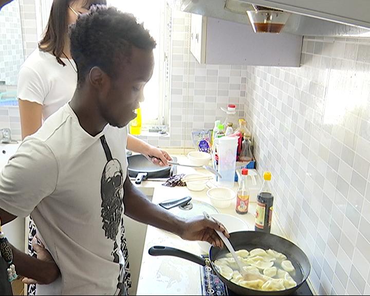 22日上午,来自肯尼亚、刚果、老挝等国的9位留学生欢聚在工科楼,一起诵读中秋节诗歌,一词一句表达了远方家人的思念。刚果留学生张景对中国书法非常感兴趣,现场他现学现用,挥笔“海上生明月、天涯共此时”。此后的留学生互动环节,师生们共同品尝各式月饼,分享中秋故事。中午十分,在留学生劳伦斯的宿舍,在中国学生的演示下,留学生们手擀饺子皮,花式捏饺子,在欢声笑语中品尝“家”的味道。