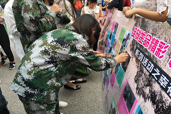 9月22日中午,农学园艺色花堂 心育部在食堂门口开展“绽放生命精彩,畅享绚丽人生”系列之幸福纪念册活动。