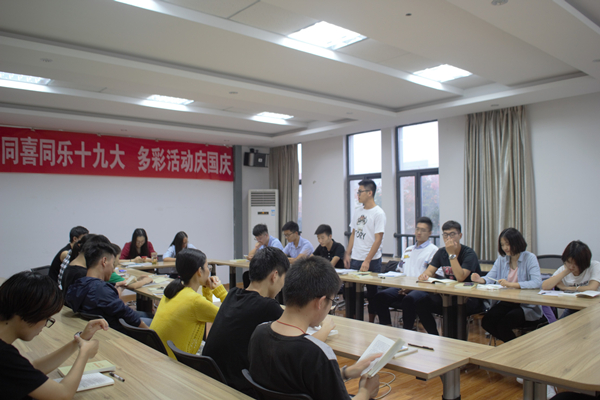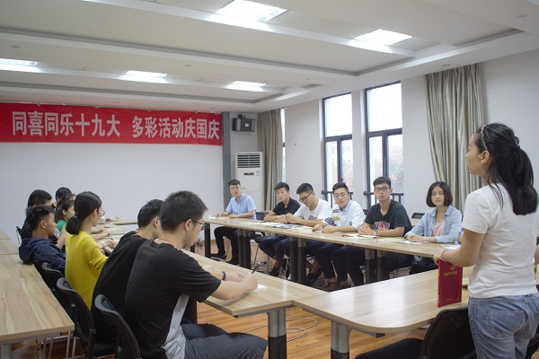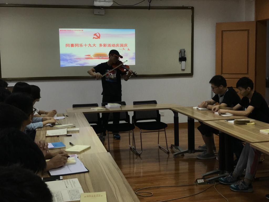活动中,支部成员分别以演讲、特长表演等形式畅谈与展望,为十九大胜利召开营造了良好氛围,为祖国的六十八岁华诞献上了自己的祝福。支部书记朱晓宦老师指出党的十九大是凝心聚力、振奋人心、万众期待的盛会,希望同学们要勇于担当、敢于创新,要以昂扬向上的精神状态和优异的工作成绩迎接党的十九大胜利召开。