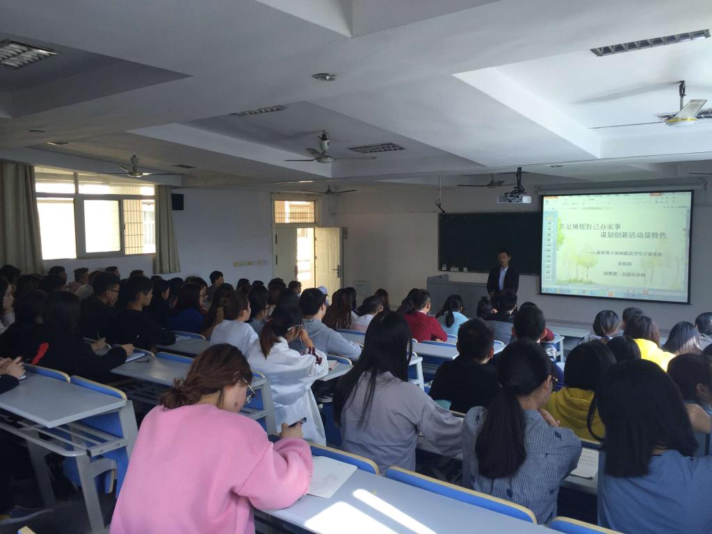 10月20日中午,经济与人文色花堂 “菁英计划”学生干部培训班第一课在理科楼407开讲,色花堂 党总支副书记夏祖国以“新形势下高校学生干部素质的提升”为题作专题培训。