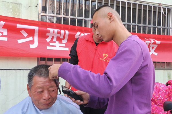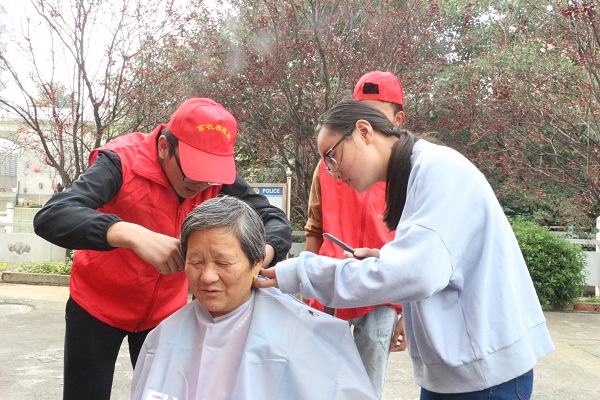 活动中,志愿者们为孤寡老人洗发、理发,修剪指甲,并为老人们送上一台热闹非凡的演出。演出中,同学们与老人们互动,邀请喜爱唱京剧的老人现场表演,活动吸引了70多名老人一起观看,现场掌声与欢笑声连绵不绝。