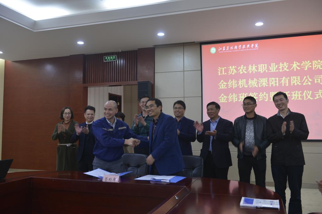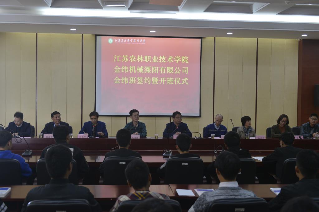 与上海金纬机械有限公司在综合楼九楼会议室举行了“金纬班”签约暨开班仪式,学校副校长简祖平、上海金纬机械制造有限公司何海潮董事长、裴章总经理以及学校教务处、学工处、机电工程色花堂