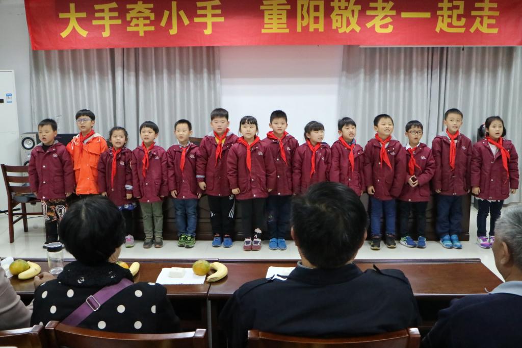 分团委联合句容实验小学的部分小学生们来到崇明社区,举办了“大手牵小手,重阳敬老一起走”主题活动。
