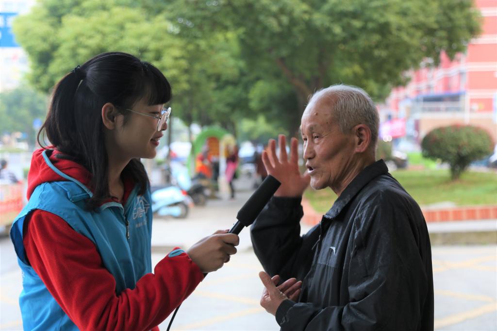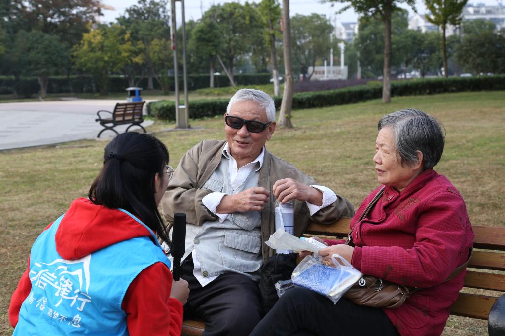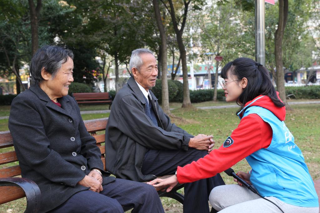 活动中志愿者为老人们送上重阳糕,陪老人聊天,架起摄像机,收集老人们给大学生的寄语,制作成大学生素质提升学习视频,在这个金秋暖阳中为青年大学生的成长指明了方向。