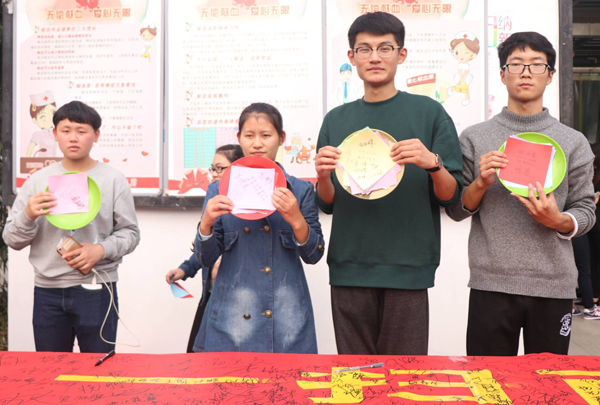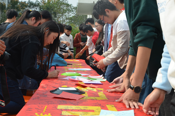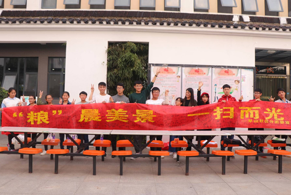 活动期间,校区分团委向同学们发放了光盘行动的倡议书,通过食堂电视播放宣传片、“最美光盘”微信集赞、舞蹈快闪、歌曲“拒绝浪费”等形式普及宣传光盘行动的相关知识,让同学们了解光盘行动的必要性。并于10月27日,在校区食堂门口举行了以“‘粮’晨美景,一扫而光”为主题的横幅签名活动,让广大师生从我做起,从点滴做起,培养良好的生活习惯,加入光盘族,一起对浪费说“不”。