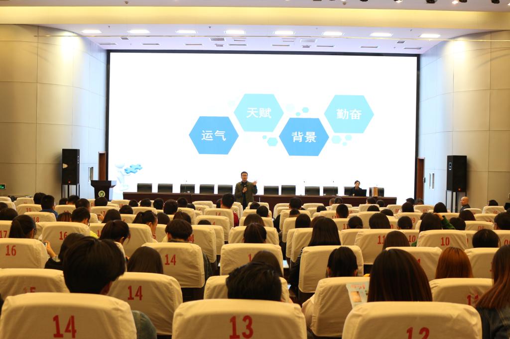 讲座中,蔡宏祥副总经理用幽默诙谐的语言介绍了“运气”“天赋”“背景”“勤奋”对学生职业生涯的影响,传达了选择比努力更重要的理念。两位校友顾欠欠和胡传银分别分享了他们在公司成长的经历,她们认为自己最大的变化是学会了换位思考、学会了感恩。