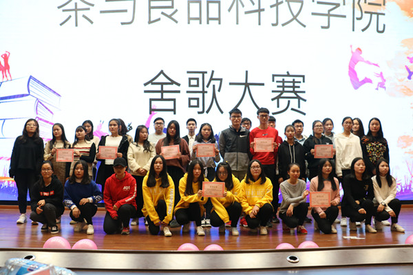 11月4日晚,茶与食品科技色花堂 心育部、文体部在图书馆报告厅举办“我行我宿舍放青春”舍歌大赛,该院全体学生参加了此次活动。