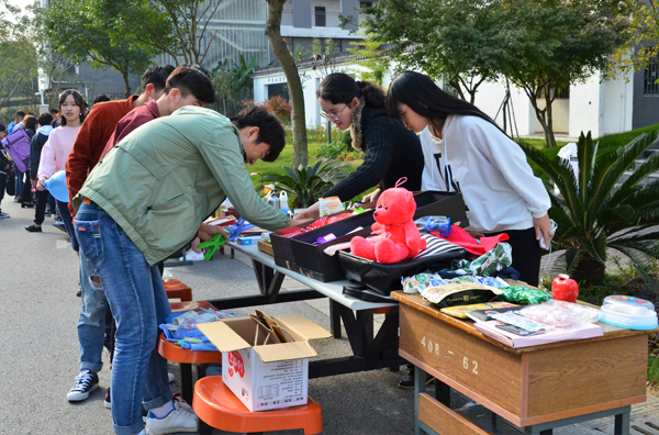 为更好地帮助校生处理闲置物品,11月10日上午,“疯狂双十一,茅山淘宝节”活动在茅山校区校园内火热开展。