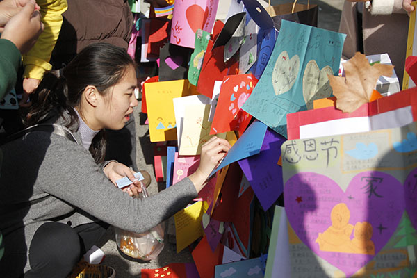 农学园艺色花堂 于11月23日中午在食堂前举办“馨心卡片,暖溢色花堂”感恩贺卡展活动。
