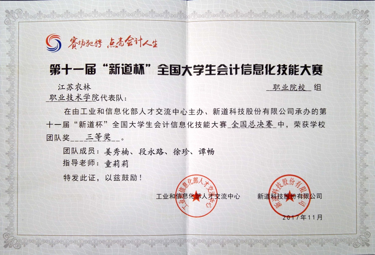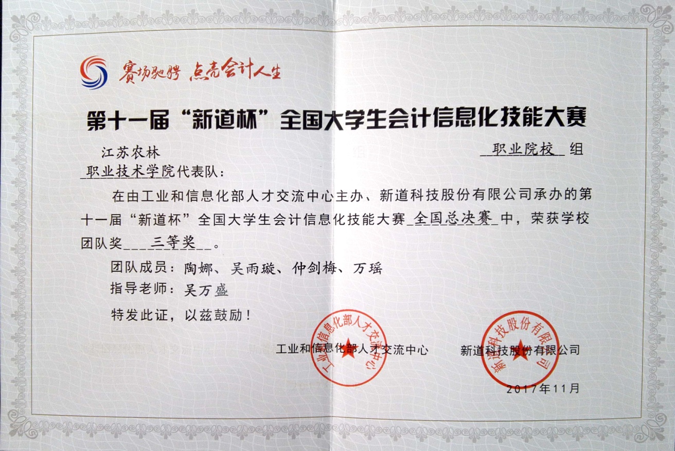 近日,第十一届“用友新道杯”全国大学生会计信息化技能大赛总决赛在江苏经贸职业技术色花堂
