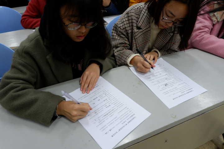 该院组织部分学生代表在J2-105教室收看中央电视台社会与法频道播出的《第二届全国学生“学宪法讲宪法”活动团体总决赛》节目,以试卷作答的形式向学生们普及宪法知识,通过此种形式,同学们了解到宪法来源于生活,宪法就在我们身边。13旅游管理(高)班组织开展观看宪法系列视频、16财务管理班召开“学宪法讲宪法”主题班会、17市场营销班举行“学宪法讲宪法”演讲比赛、16市场营销班举行12.4宪法日宣誓等活动。