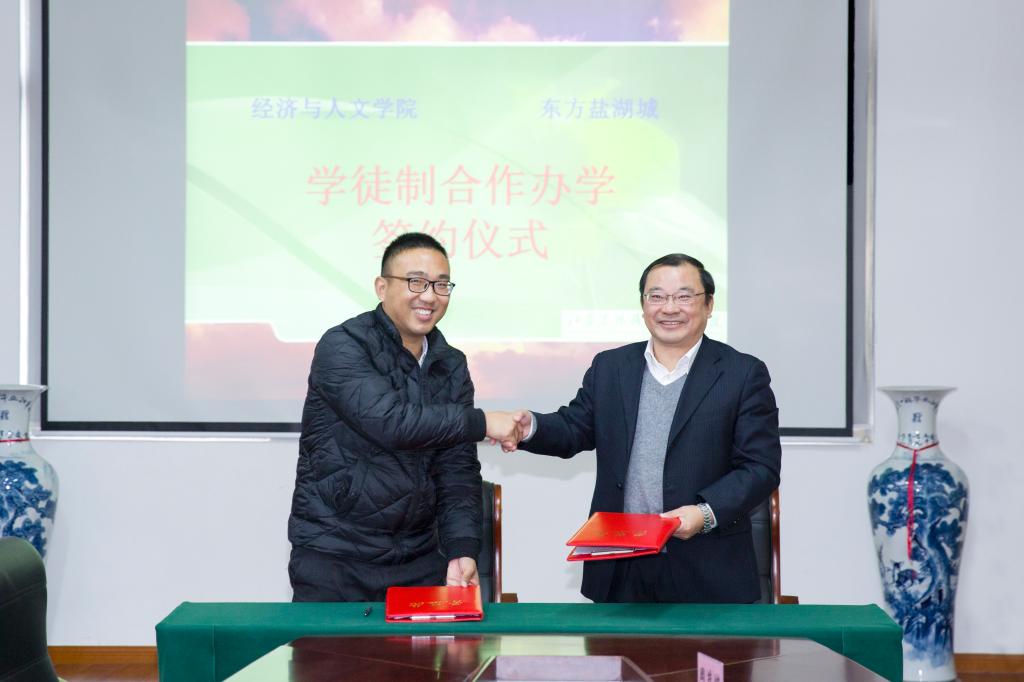 与龙控集团(东方盐湖城)学徒制校企合作办学签约仪式在经济与人文色花堂