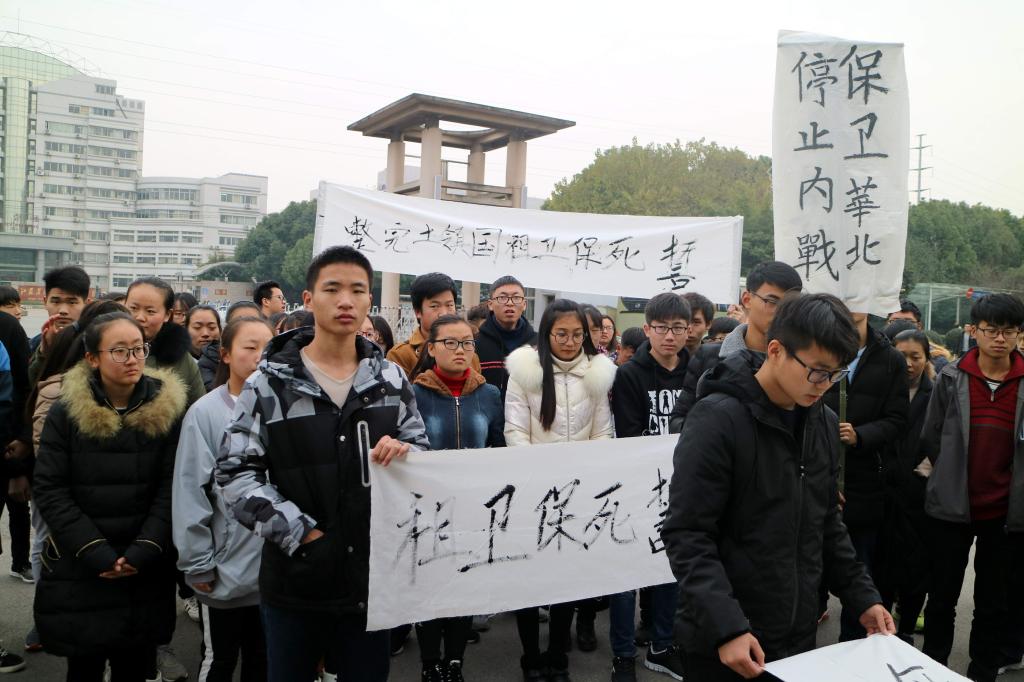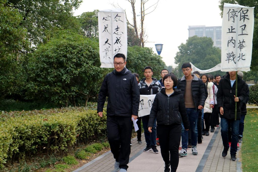 组织青年师生举行“回首救亡路,秉承中华魂”纪念活动。