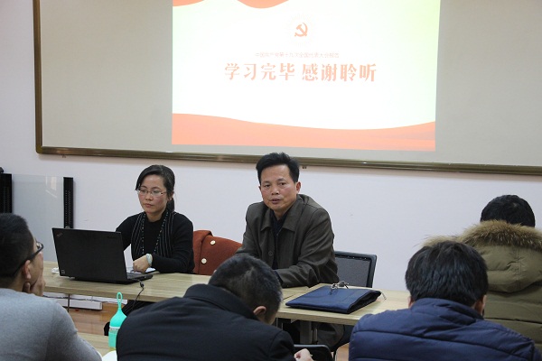 党总支在该院多功能会议室召开全体党员大会,集中学习党的十九大报告精神。