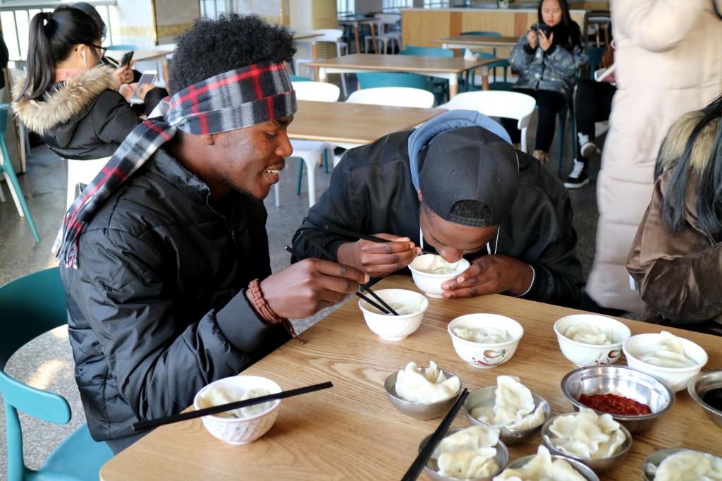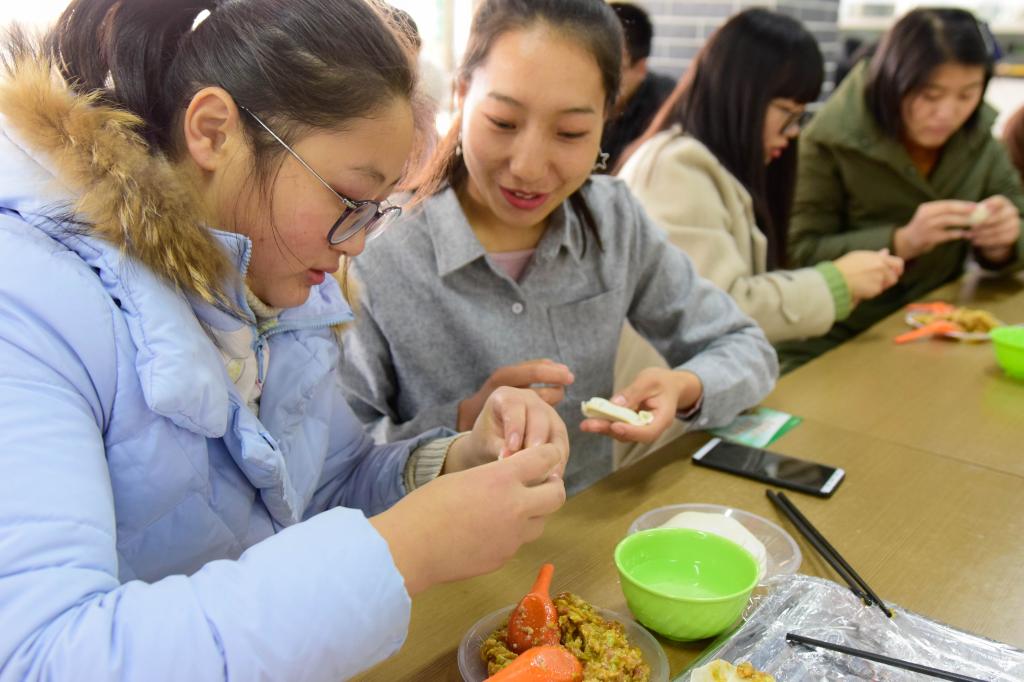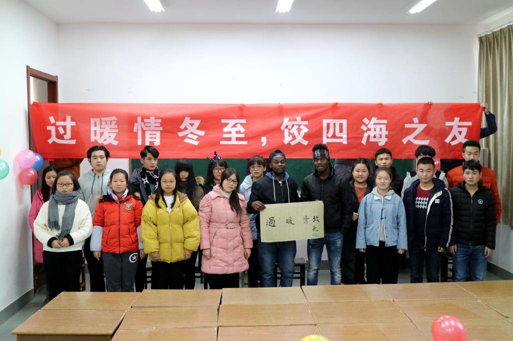 举办“过暖情冬至,饺四海之友”主题活动,该院学生和部分外籍留学生参加了活动。活动中,学生们亲手包饺子,留学生们认真的观看学生的包饺子分解动作,虽然不是很熟练但是经过练习终于能包出相对标准的“饺子”了。在等待饺子煮熟的时间里,中外学子还开展了书法交流会,整个活动笑声不断,温情满满。