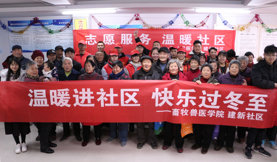 党总支学生党支部学生党员代表、入党发展对象、积极分子、以及青年志愿者一行来到建新社区,为社区的老人们带来“温暖进社区快乐过冬至”志愿服务活动。