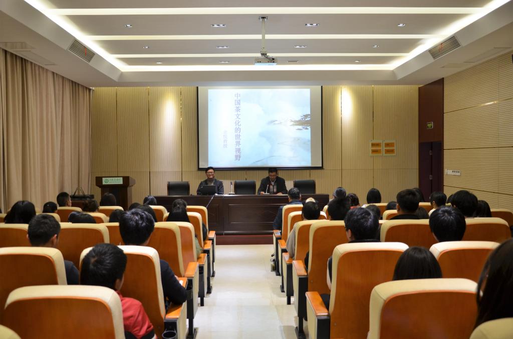 首席研究员余悦教授作了一场题为“中国茶文化的世界视野”的专题讲座。茶艺与茶叶营销专业学科带头人王润贤教授、专业教师、茶艺与茶叶营销专业全体学生等参加了此次活动。