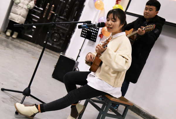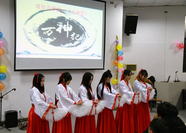 伴随着悠扬的歌声,动漫社的同学们带来了舞蹈《万神祭》;义工社表演的小品《爱的天使》在严冬给人带来沁人温暖;嘉木茶艺社《茶烟细杨,芳华依旧》展现了柔美茶情。话剧社小品《考试风云》、翰墨书画社《书画茅山》、吉他社《晴天》、网球社《看病》、街舞社《Nice boy》……十个社团的精彩表演让现场掌声不断。