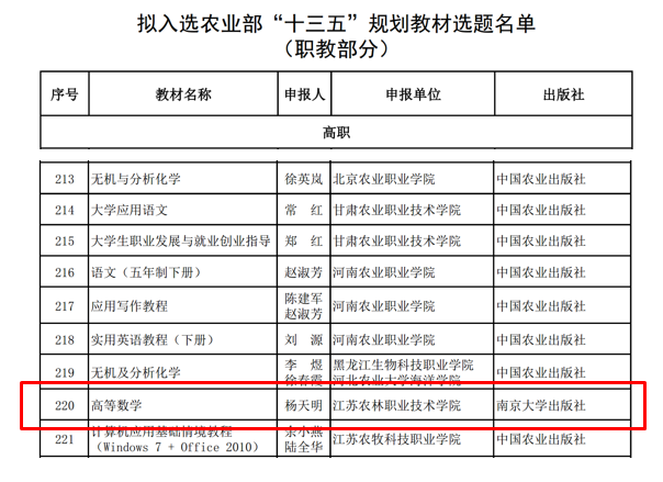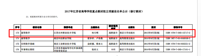 近日,我校数学团队编写的《高等数学》教材入选农业部“十三五”规划教材选题,同时喜获2017年江苏省高等学校重点教材立项建设(修订教材)。