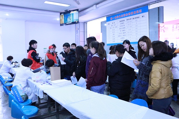 中午十二点,学生们纷纷加入到献血队伍中来,按照医务人员的要求和现场志愿者们的引导,同学们认真填写了献血信息表,进行血样采集和身体检查,认真听取了医生讲解献血过程中应该注意的事项。随后,符合献血条件的同学们陆续开始献血,献血活动持续到5点结束,共195名同学成功献血,总献血量61300毫升。