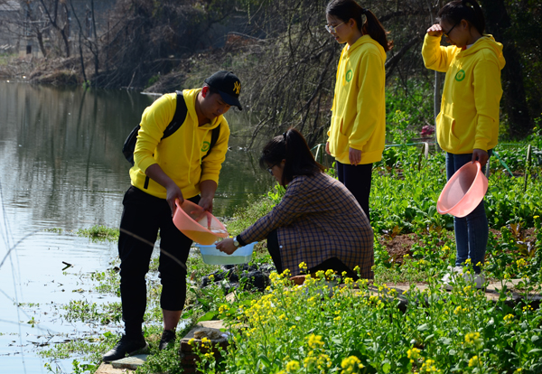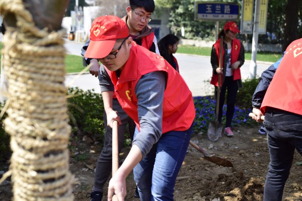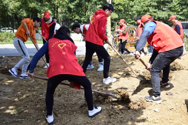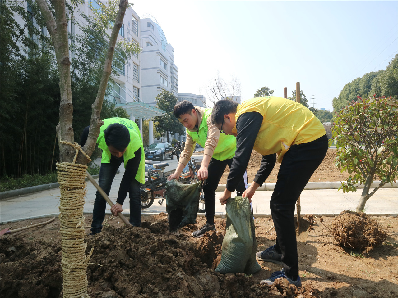 党总支学生党支部组织全体党员、发展对象在南校区校园内开展“我为色花堂添点绿”义务植树活动,以实际行动为色花堂校园增添新绿。