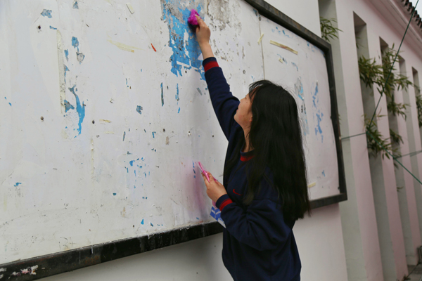 本次活动由“城市清道夫”小分队牵头,共招募了80多名志愿者,分别对学校操场、机房、教室及各个宣传报栏进行了清扫。同学们拿起扫帚、小铲子在校园中干的热火朝天,为美化我们的校园环境贡献出自己的一小份力量。经过志愿者们的共同努力,校园变得更加整洁。