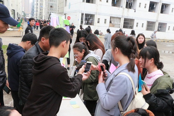 另一批志愿者们来到大街上,给环卫工人们送上一杯热茶,并帮助他们打扫卫生。与此同时,在南校区食堂门口,志愿者们在进行此次活动的现场直播,通过二维码与校园的同学们一同分享了此次学雷锋志愿活动。