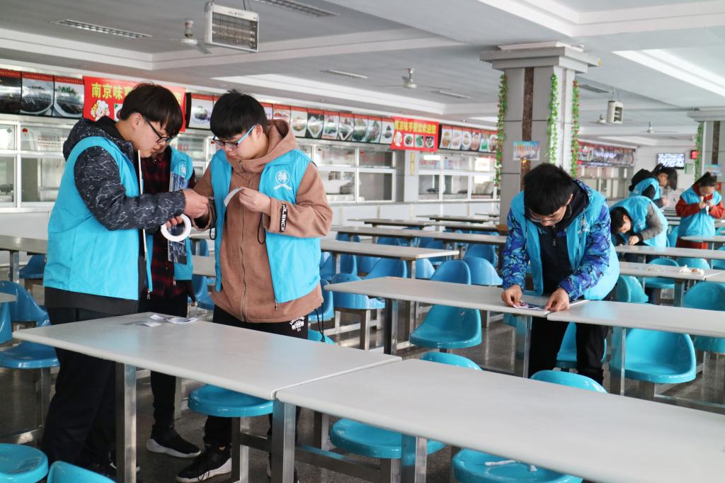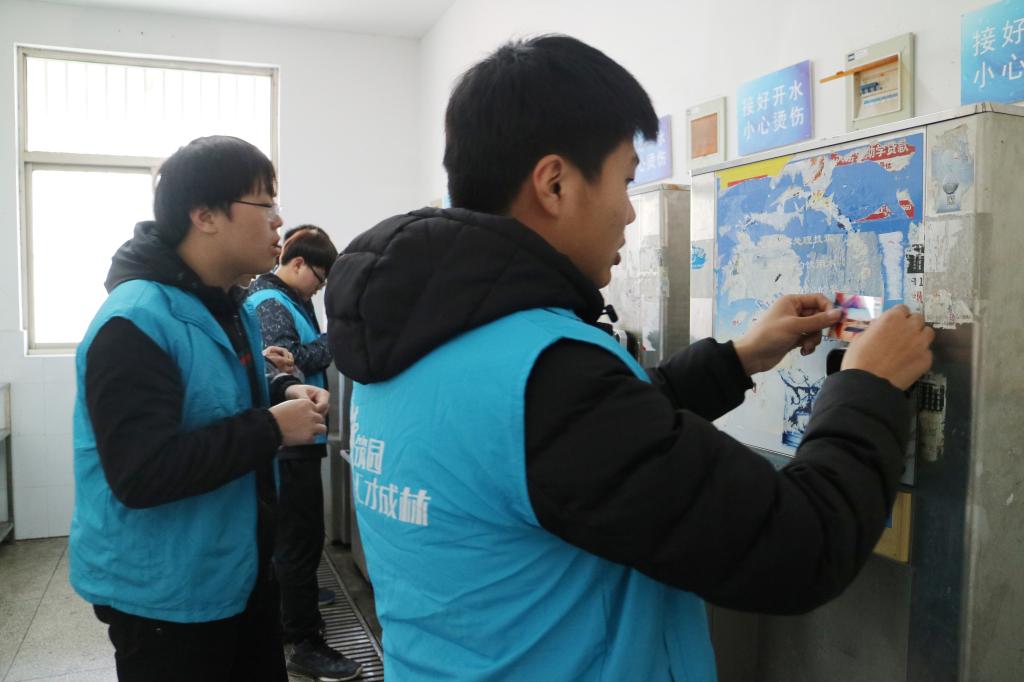 本次活动有十余名大学生志愿者参加,他们主要帮助了校园食堂餐桌的清洁、宿舍楼道的垃圾清理、教室卫生打扫及张贴温馨标语等。寻找打扫工具、贴标语…志愿者们互帮互助,热情高涨,用实际行动换来一个清洁的校园。