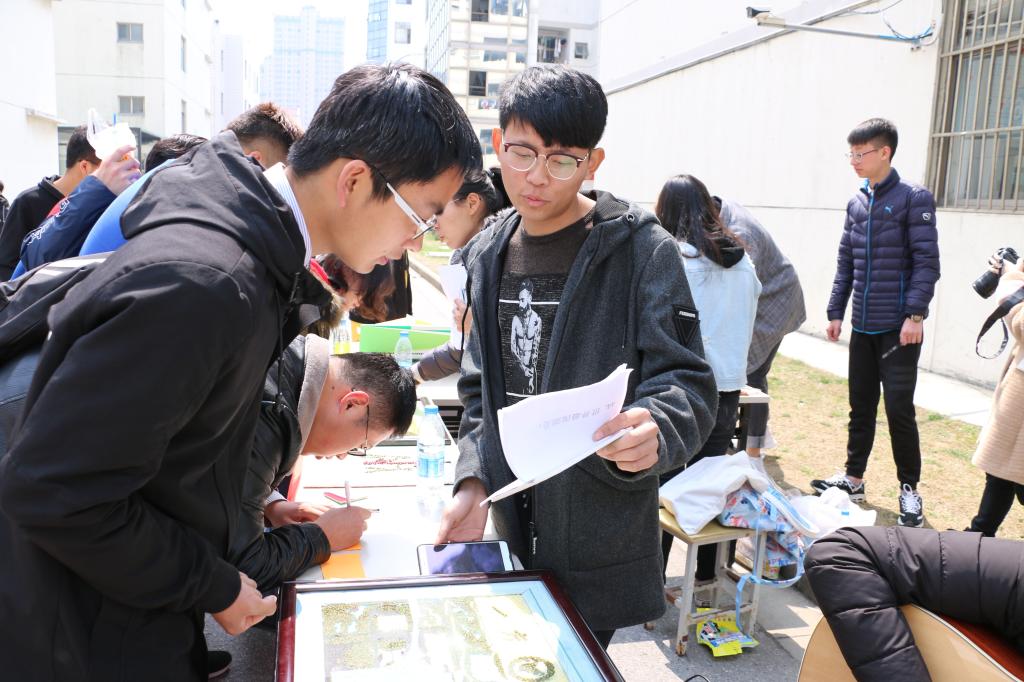 活动中,同学们通过参与节水护水知识竞答、节水治污妙计收集、节水英雄榜张贴等环节认识到节约用水,保护生态环境的重要性。现场还设置了简易净水装置,让同学们体验用石棉、鹅卵石、细沙、活性炭等材料将“污水”变为“清水”的过程,增强同学们生活污水循环再利用的了解。为了吸引过往同学参与,轮滑社、吉他社、五谷杂粮粘贴画等社团也各展所长,现场气氛热烈。