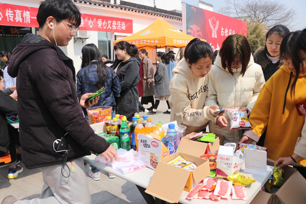 3月22日,由我校团委主办的以旧换“心”,爱心义卖活动在北校区食堂前广场举行,活动现场人头攒动,热闹非凡。
