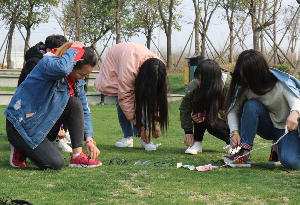 此次活动由“有缘相见”、“同舟共济”、“美丽世界”三个部分组成。热身游戏分组后,同学们分小组,通过妙解千千结、拯救同伴等团体活动,增进了组员的了解与凝聚力。最后环节,小组通过形色app,在公园寻访美丽花草,并用手机记录下组员们的最美瞬间。