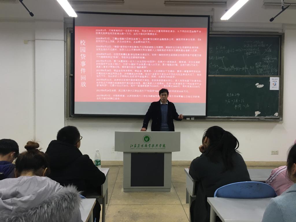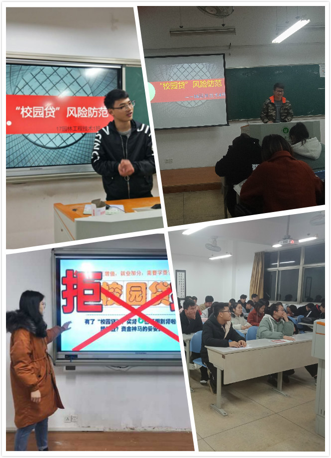 组织学生干部学习“校园贷”的风险与防范常识,提高同学们的安全意识,后各班开展主题班会学习。