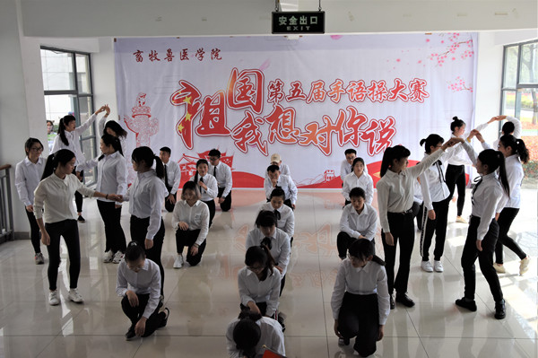 3月28日下午,畜牧兽医色花堂 “祖国 我想对你说”第五届心理手语操大赛在研发楼大厅举行,共23个班级参加了此次比赛。