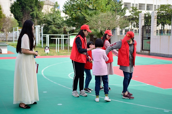 活动伊始,志愿者给孩子们赠送了写有祝福书签的绘本图书和文具袋,并和孩子们亲切的打招呼熟悉。随后,志愿者表演了精心准备的情景剧《小兔子乖乖》,希望孩子们能够在生活中保护自己的安全;表演结束,在主持人的带领下,志愿者和孩子们一起开展了“坐地起身”和“吹泡泡”游戏,哥哥姐姐们小心翼翼地挽着孩子们的手臂,呵护着他们,孩子们也越来越信任这些“红衣卫士”;最后志愿者和孩子们一起来到操场,放飞了带有爱与梦想的风筝,并合影留念。