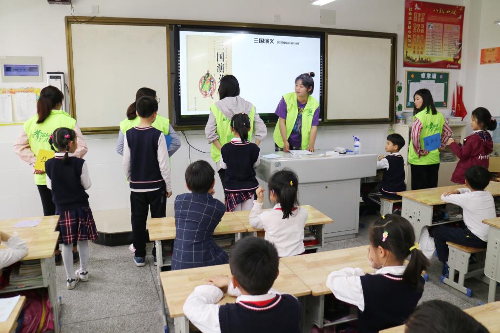 和句容市图书馆的志愿者们来到句容市实验小学,通过“科普爱书小妙招”、“名著连连看”、“猜字谜”等游戏环节检验了小学生们的阅读成果,有效的激发了大家阅读的热情和兴趣。