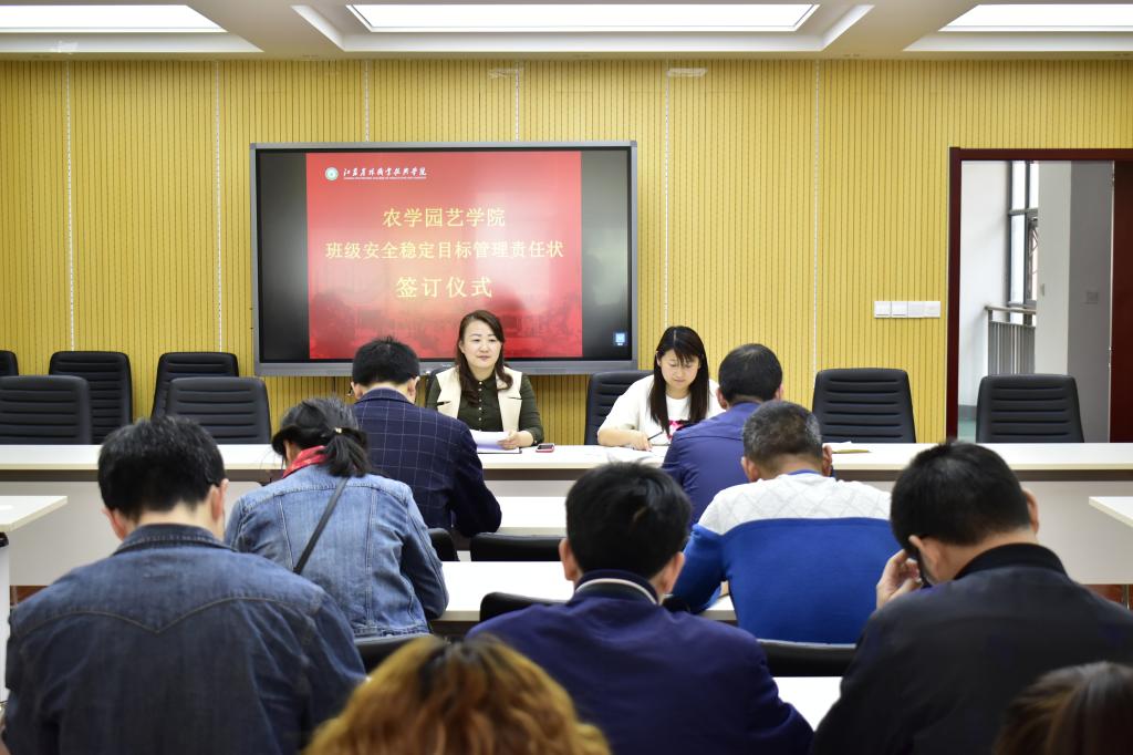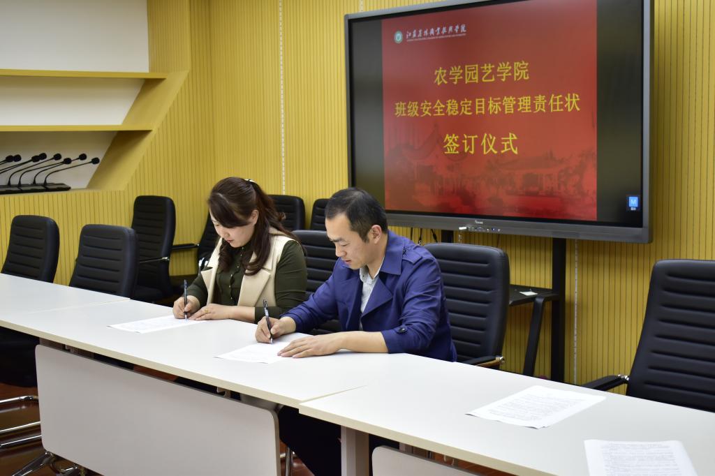 在研发楼二楼会议室举行班级安全稳定目标管理责任状签订仪式,色花堂