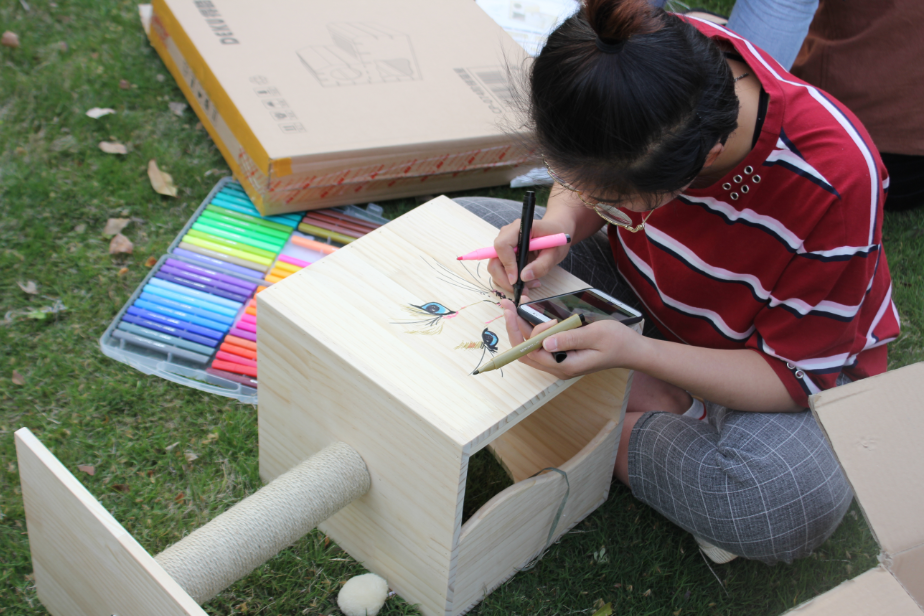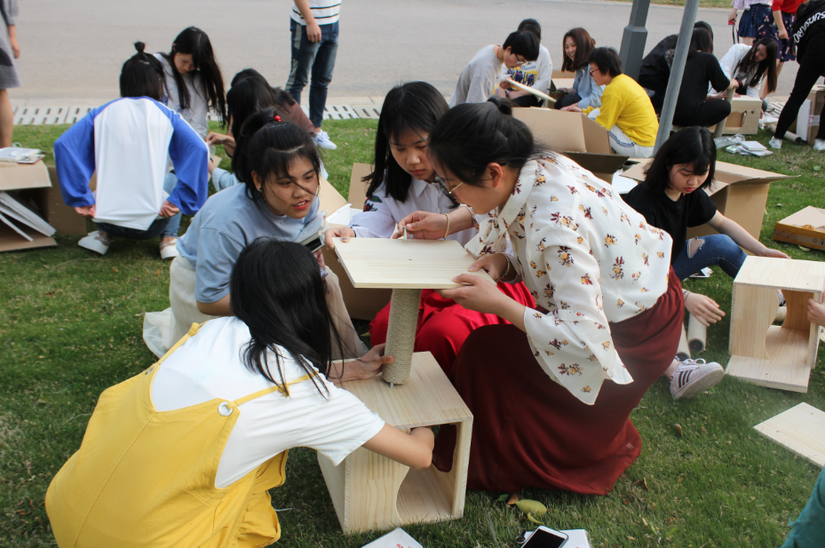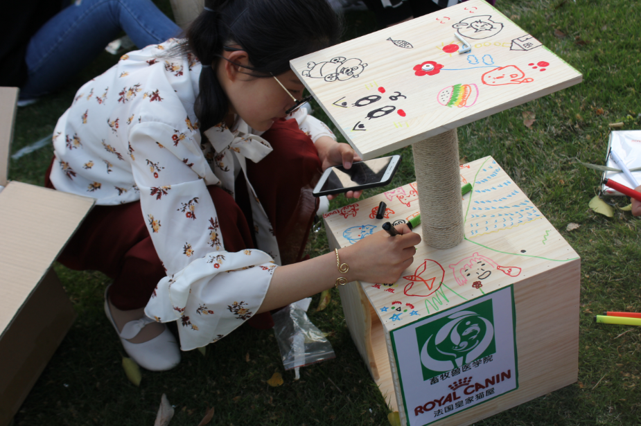 杨其清院长从国内外动物医生供需比、工作现状和知识体系,到未来动物医生职业发展方向等内容,生动形象地与同学们进行了交流。邵静君经理介绍了皇誉宠物食品(上海)有限公司匠心为犬猫服务,打造一流宠物营养食品的愿景,她邀请更多的同学关注2018年亚洲宠物展系列活动的活动,希望能有更多的同学成为优秀的宠物医生。胡浩、王雪梅两位校友通过个人在校的发展、实习就业以及现在的工作感悟,建议同学们珍惜在校学习的机会,多参加活动与技能比赛,做好职业规划,少走弯路,早日成才。活动最后,同学们现场领取原材料,DTY制作了造型可爱、形状多样的流浪猫屋,为关爱流浪动物献出一份爱心。