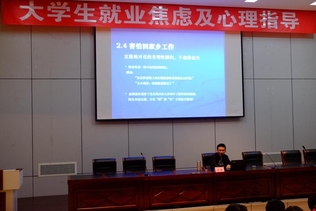 在研发楼报告厅联合举办“大学生就业焦虑及心理指导”讲座。本次讲座特邀南京师范大学副教授裴涛老师担任主讲。