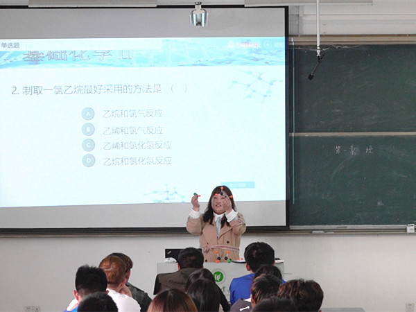 4月25日下午,教育教学督导处主办的“每月一讲”公开示范课在J1-A204精彩上演,茶与食品科技色花堂 的刘凌老师引领师生零距离接触《基础化学》之“炔”的世界。